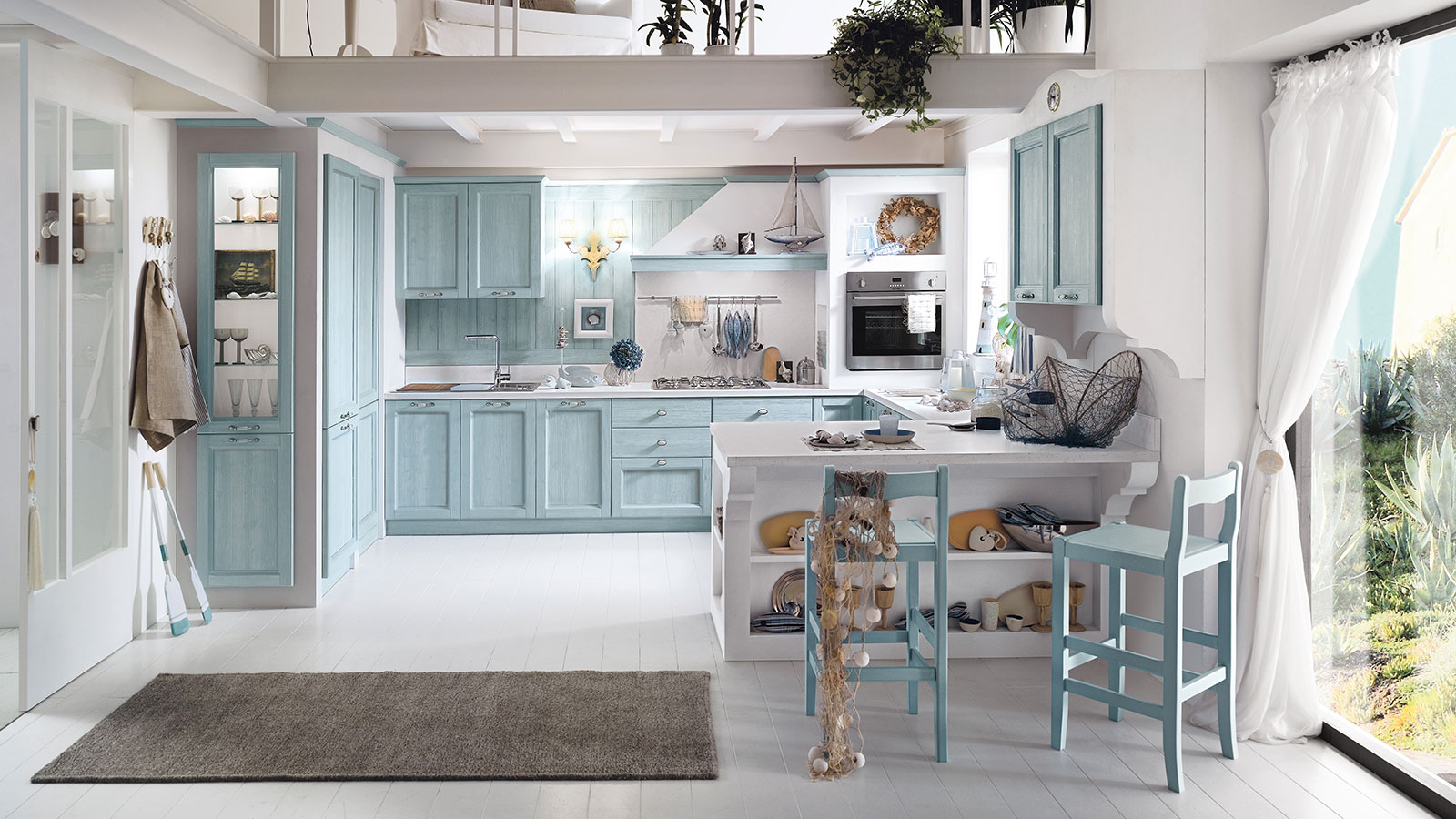 Consigliamo la cucina di ANICE TALCATO di CALLESELLA dinamica, fresca e funzionale, tutto è a portata di mano, un arredo spazioso e luminoso di un delicato color azzurro tenue che richiama dolcemente i colori del mare.