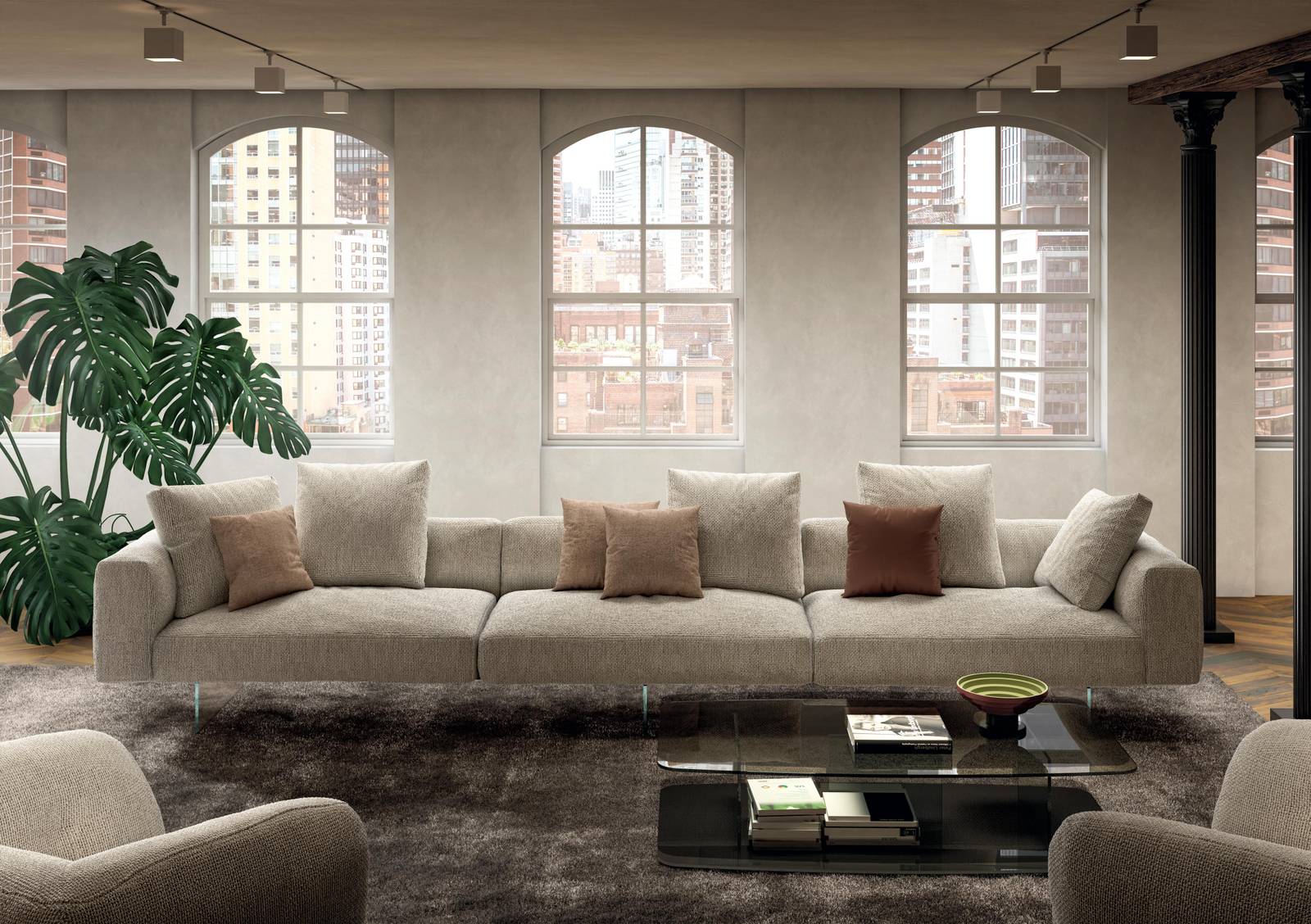 Divani componibili su misura e poltrone trasformabili a seconda delle esigenze arredano con eleganza il soggiorno, offrendo massima libertà progettuale.