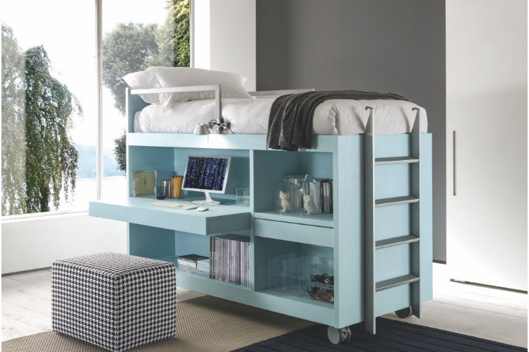Un’altra soluzione da camera sempre di Erba Mobili è la linea 1×2 ISOLA dove troviamo, in un unico mobile, letto armadio e scrivania.
