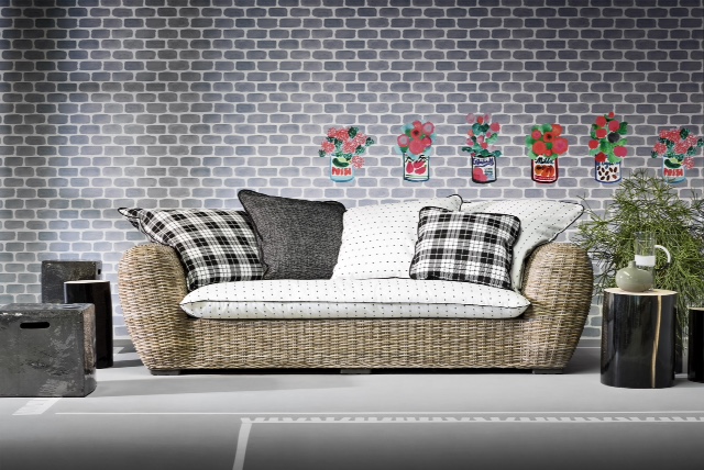 Realizzati con un involucro in kubu rattan naturale intrecciato a mano che accoglie la seduta imbottita e cuscini schienale. Le forme, morbide e arrotondate conferiscono al divano un’aria esotica e accogliente. Abbinato ai divani anche il nuovo tavolino INOUT 626 dalle forme smussate che ricordano quelle di un sasso. Il colore tendente al grigio della fibra dona ai pezzi intrecciati un’aria raffinata e finemente vissuta.