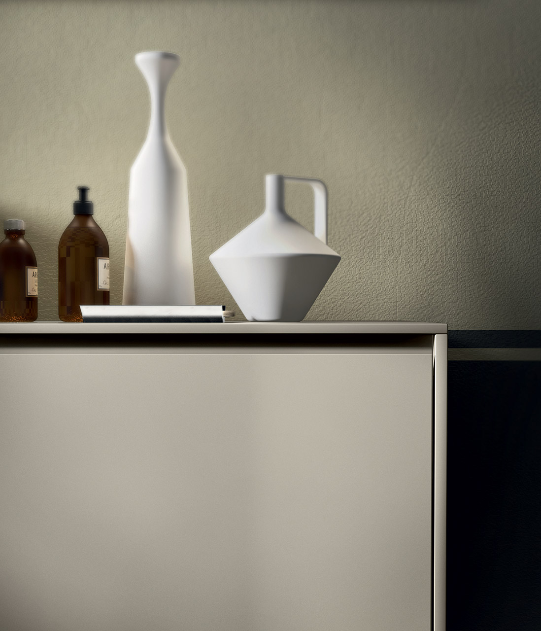 Boiserie, particolari preziosi, legni scuri e raffinati, una palette scelta tra le tonalità più sofisticate sono gli elementi che danno vita a EOS: un modello caratterizzato da linee semplici e personalizzabili, che si identifica per l’apertura dell’anta tramite la presa a gola.