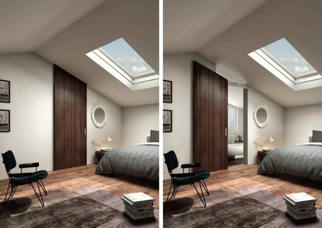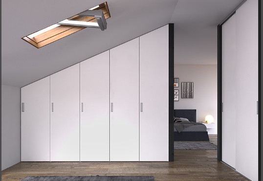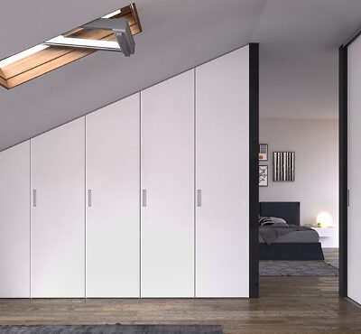 In mansarda si sa gli spazi sono sempre contenuti quindi bisogna scegliere quasi sempre soluzioni su misura come un armadio a battenti o a tubi che segue l’andamento del soffitto. Anche le porte che dividono una camera da un bagno possono essere studiate su misura con la parte superiore inclinata, il risultato è un lavoro eseguito ad arte, elegante ma soprattutto di design.