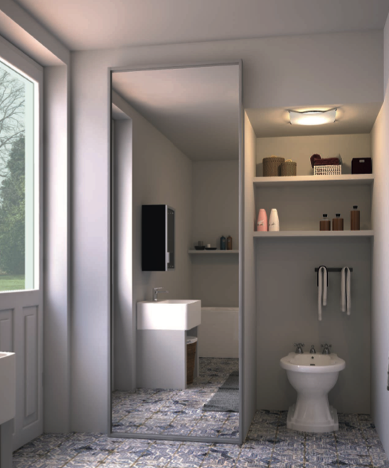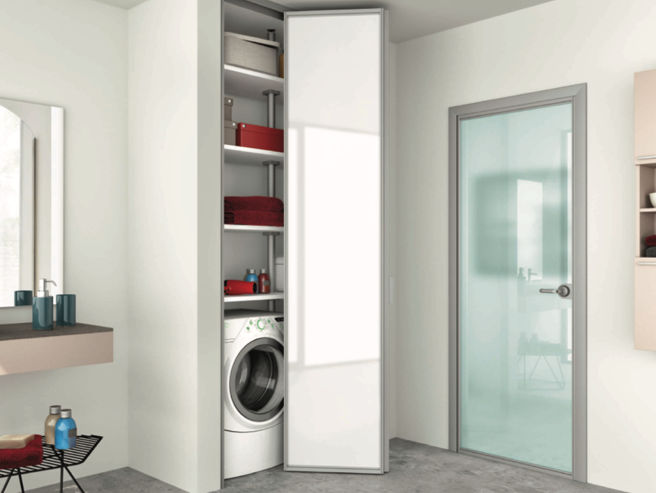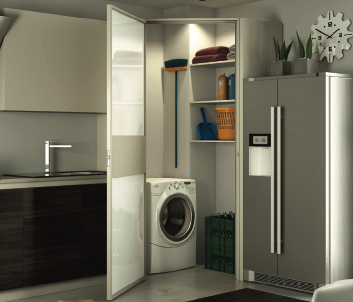 Varie le soluzioni proposte, porte a soffietto e a battenti con la possibilità di sfruttare l’angolo della cucina, porte scorrevoli con specchio incorporato per rendere l’ambiente più ampio e luminoso.