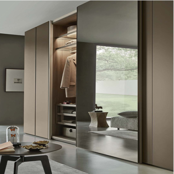 Ordina, nasconde, organizza, riflette, scorre, si apre e si attrezza per sedurvi con le sue infinite possibilità. Ampie pareti contengono con sobrietà “vissuti” personali. Un sistema estremamente versatile e ricercato nei materiale e nelle soluzione dove lo spazio si divide o si moltiplica secondo i vostri desideri.