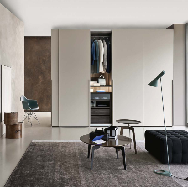 Ordina, nasconde, organizza, riflette, scorre, si apre e si attrezza per sedurvi con le sue infinite possibilità. Ampie pareti contengono con sobrietà “vissuti” personali. Un sistema estremamente versatile e ricercato nei materiale e nelle soluzione dove lo spazio si divide o si moltiplica secondo i vostri desideri.