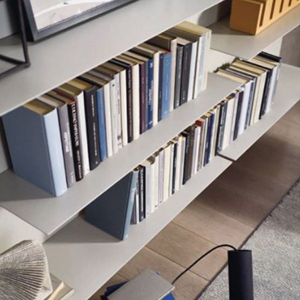 Proteggere una parete, evitare un uso improprio di una zona, decorare con abbinamenti cromatici in tinta o in contrasto: sono diversi gli utilizzi della boiserie componibile LAMPO. I pannelli hanno un forte spessore (35 mm), lo stesso maggiorato delle ante, e sono distanziati da lievi fessure, nella quali si possono inserire in senso orizzontale delle mensole in metallo di ridotto spessore (3 mm) ma con una resistente capacità di carico, per accogliere libri e oggetti di ogni tipo.