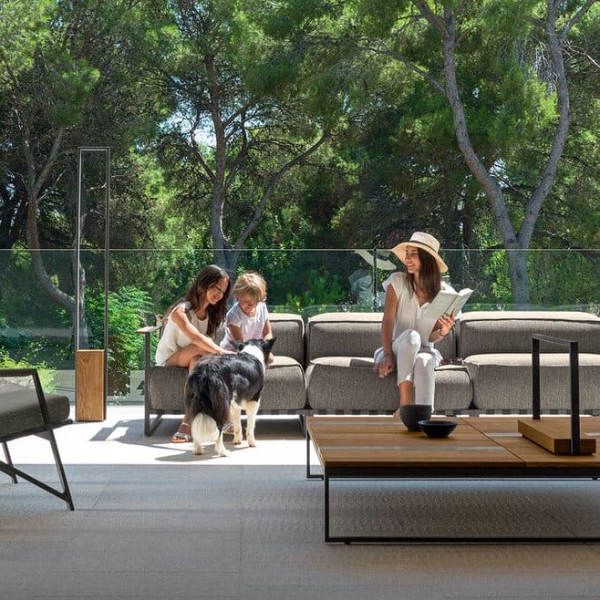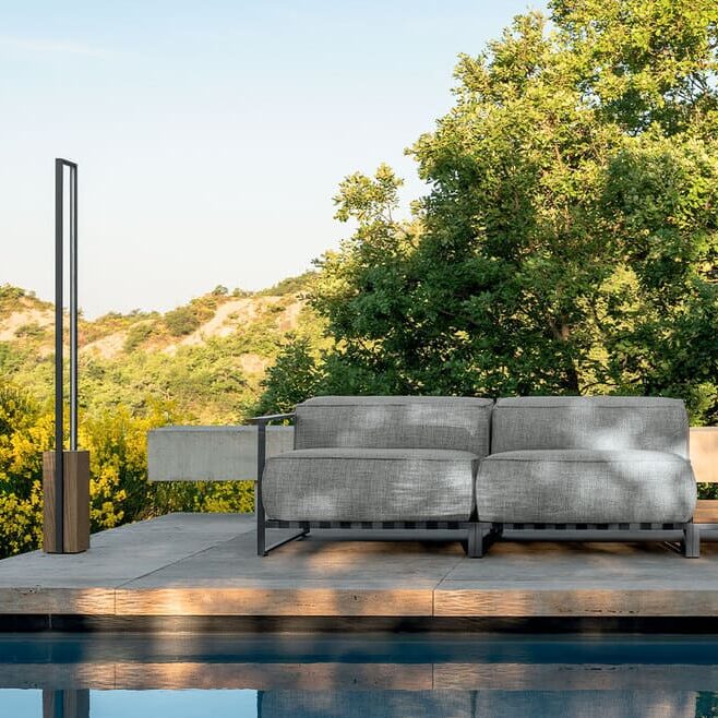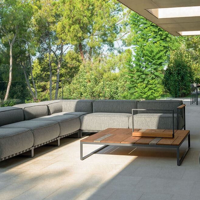 Divano modulare, Poltrona living, Lettino, Pouf, Daybed, Tavolini da caffè di diverse dimensioni (100 x 100, 140 x 70, 140 x 140), Sedie, Poltrone e Tavolo da pranzo di diverse dimensioni(200 x 100, 260 x 100, 150 x 150, 90 x 90), Sgabelli e Tavolo bar (125 x 70) ed infine le Lampade di 3 dimensioni (L, S, XS).