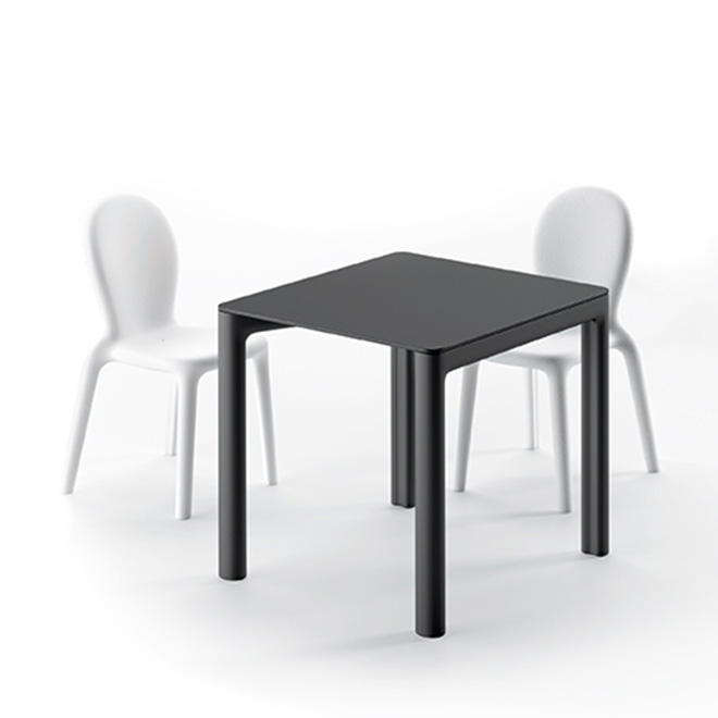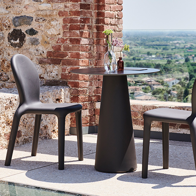 - Chloé Table: Set di tavoli composti da una struttura gambe portante in PE, polietilene stampato in rotomoulding, abbinata a piani in HPL nero, adatti sia all’uso indoor che outdoor. Le linee moderne e minimal li rendono particolarmente versatili nell’arredare ambienti contemporanei.