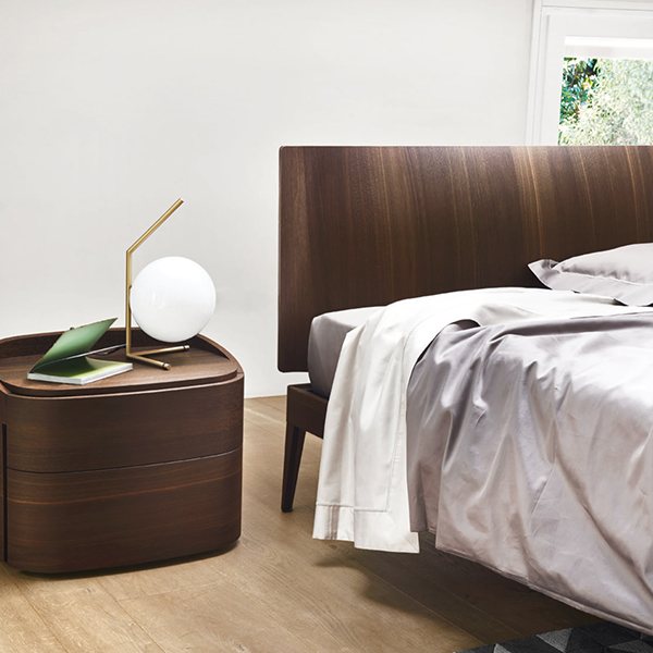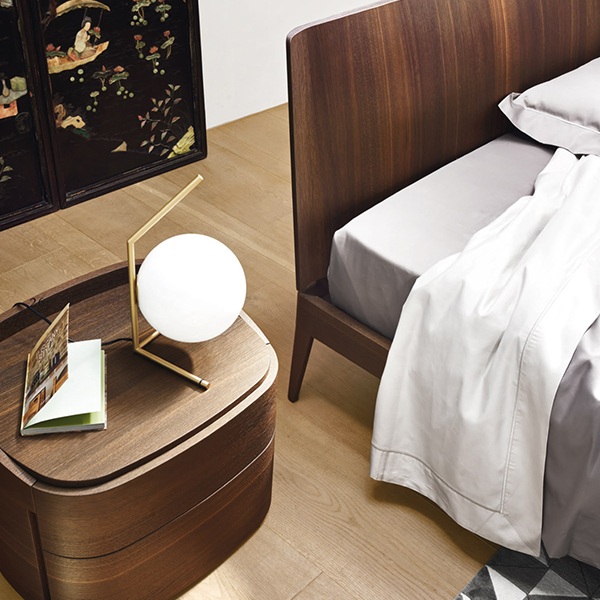 Un letto dallo stile sobrio ed essenziale, che non rinuncia però a sedurre con linee morbide e sinuose. La cura del dettaglio unita alla qualità dei materiali fanno di Aliante una delle proposte più raffinate delle collezione, con un’ispirazione che nasce dalla cultura e della memoria dell’abitare. La testiera ricurva, lievemente staccata dalla base, e le rastremature laterali ad ala, accentuano una sensazione di leggerezza unita a una sapiente maestria artigiana.