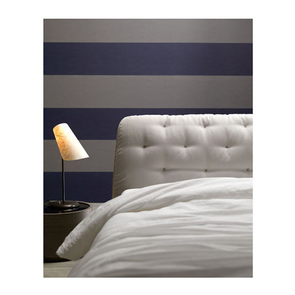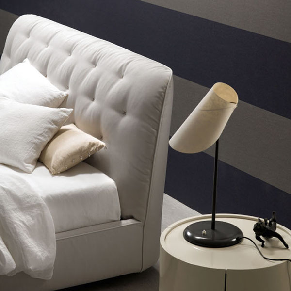 Disegnato da un perimetro e schienale rigoroso e compatto, la testiera si reinventa in una romantica nuvola di morbidezza trapuntata. L’effetto è quello dei cuscini di un tempo, nei quali un ricamo di filo fissava la piuma al suo interno. Fluo reinterpreta uno stile inserendo nello schienale un’avvolgente imbottitura in piumino sintetico, rivestito in tessuto e rifinito con leggeri ricami a “punto croce” che diventano segni distintivi di questo letto.