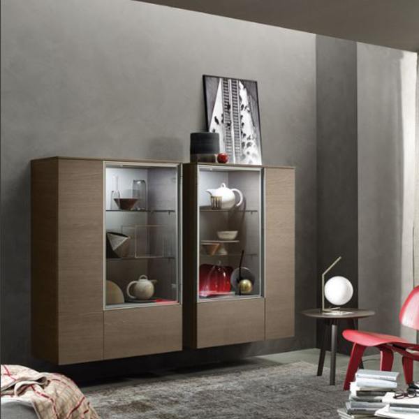 Versatlli e affascinanti elementi d’arredo che uniscono la funzione del contenimento con quella dell’esposizione, grazie all’inserimento dell’anta SCRIGNO in composizioni di contenitori LAMPO. Tutto questo con una visibile qualità anche nei particolari: dal rivestimento a 3 lati, di spessore 15 mm, con giunzioni a 45°, al telaio metallico che racchiude l’anta in vetro, aggiungendo una nota elegantemente preziosa all’insieme.