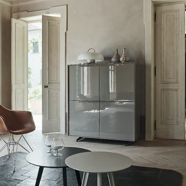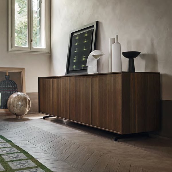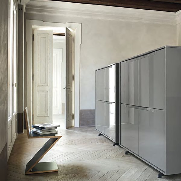 Forme geometricamente pure che vivono in armonia con lo spazio circostante, arricchendolo con una raffinata presenza. Complementi realizzati con passione per ogni particolari e con un sapiente studio delle proporzioni, dei materiali e dei colori. Le MADIE VELA sono caratterizzate dal perimetro elegantemente sottile (10 mm), con giunzioni a 45 gradi, che racchiude ante di spessore 25 mm, con maniglia scavata direttamente nel bordo superiore, sia nella versione laccata che quella impiallacciata con tecniche di accostamento delle venature che si ispirano ai principi dell’ebanisteria.