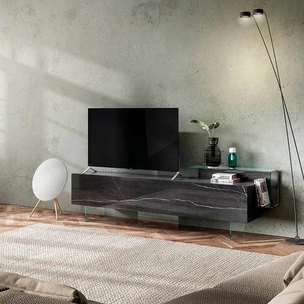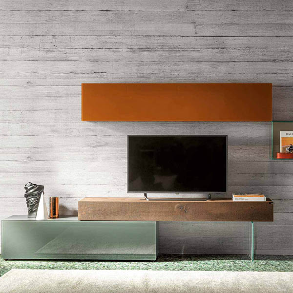 Che sia un unico e semplice volume o una composizione più articolata con elementi sospesi, il mobile tv 36e8 si distingue sempre per una linea leggera ed essenziale e per la qualità di realizzazione, che si ritrova nella costruzione a 45° con filigrana in alluminio e nell’anta profilata in vetro colorato, XGlass o nobile legno Wildwood. Gli elementi si inseriscono perfettamente in ciascun contesto, risolvendo ogni esigenza dimensionale e funzionale.