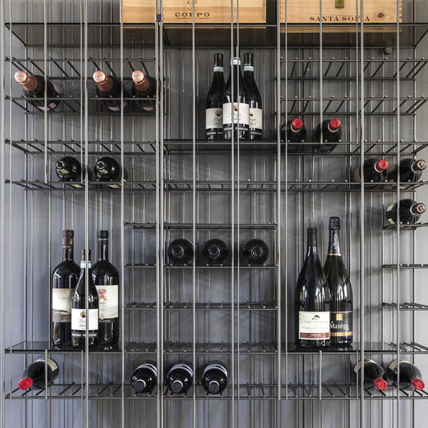 Metrica winery è un portabottiglie in metallo con una semplice struttura il cui ritmo è scandito dalle bacchette di ferro fissate a diversi intervalli entro i quali, bottiglie e gli oggetti ne completano la forma scrivendo di volta in volta nuove composizioni.