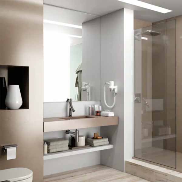 Silestone® reinventa questo ambiente grazie al nuovo concetto di grande formato su misura. È possibile utilizzare Silestone a parete, a pavimento, come top con il lavabo, con il minimo delle giunzioni o fughe. Un’idea, un unico pezzo.