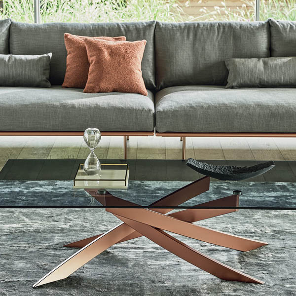 Tavolino con struttura in Acciaio laccato, piano in Legno impiallacciato, Cristallo, Cristallo Antigraffio o SuperMarmo.