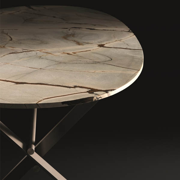 Segno iconico e primordiale, l’incrocio a X caratterizza il tavolo e la consolle XCS. Due fianchi disegnati dall’accostamento di piatti metallici sottili ed inclinati, collegati da una trave longitudinale a doppio tubo circolare. Una struttura dal disegno forte, esaltata da dettagli e finiture ricercate, che sorregge piani di varie dimensioni e forme, in legno, vetro o pietra naturale.
